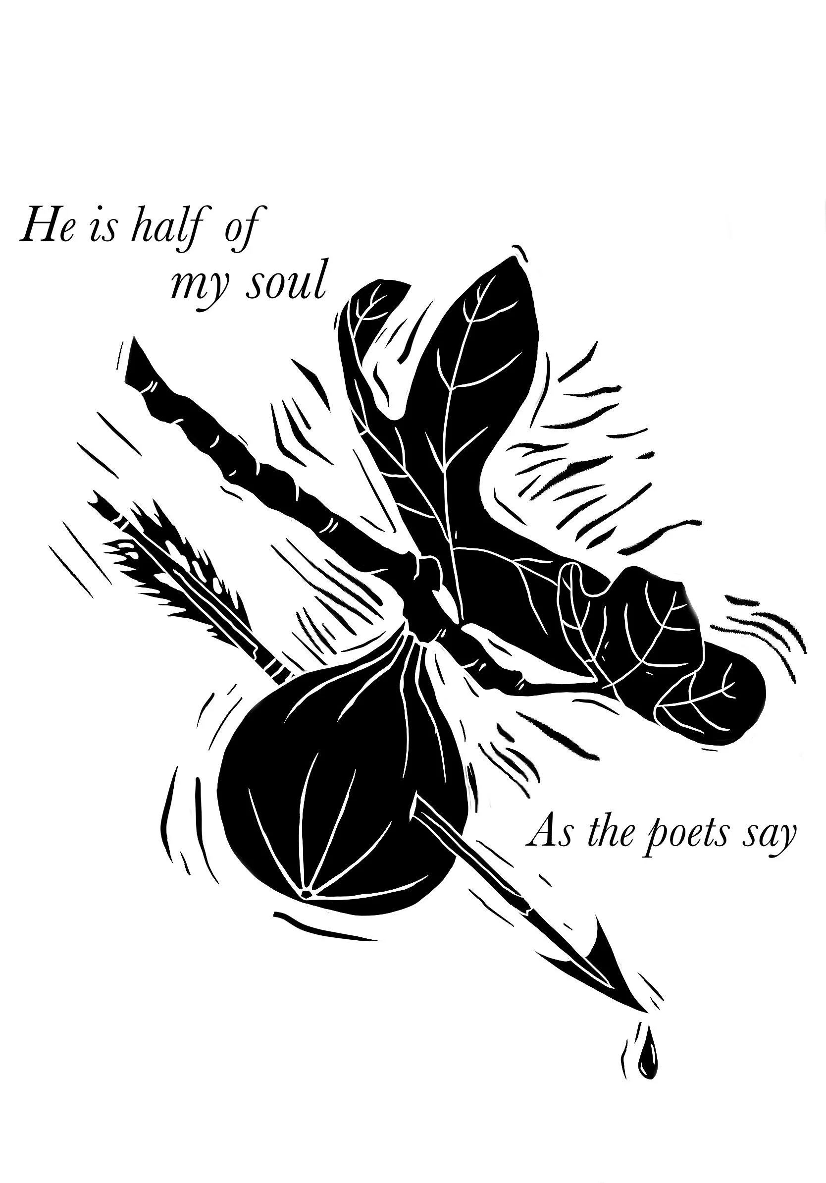 Concept: An illustration of a quote from Song of Achilles by Madeline Miller in the style of a woodcut print.